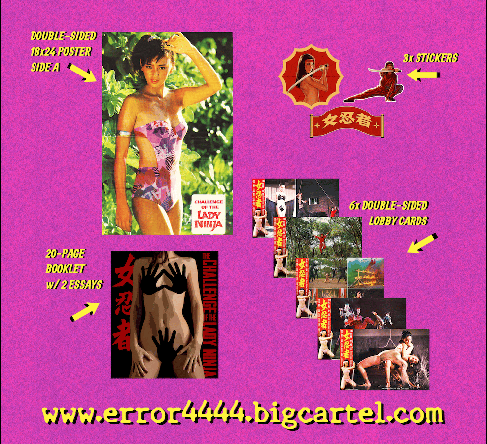 Error 4444 is honored to finally be able to present Challenge of the Lady Ninja on Blu-ray with a brand new pain-staking 2K restoration and a slew of special features!